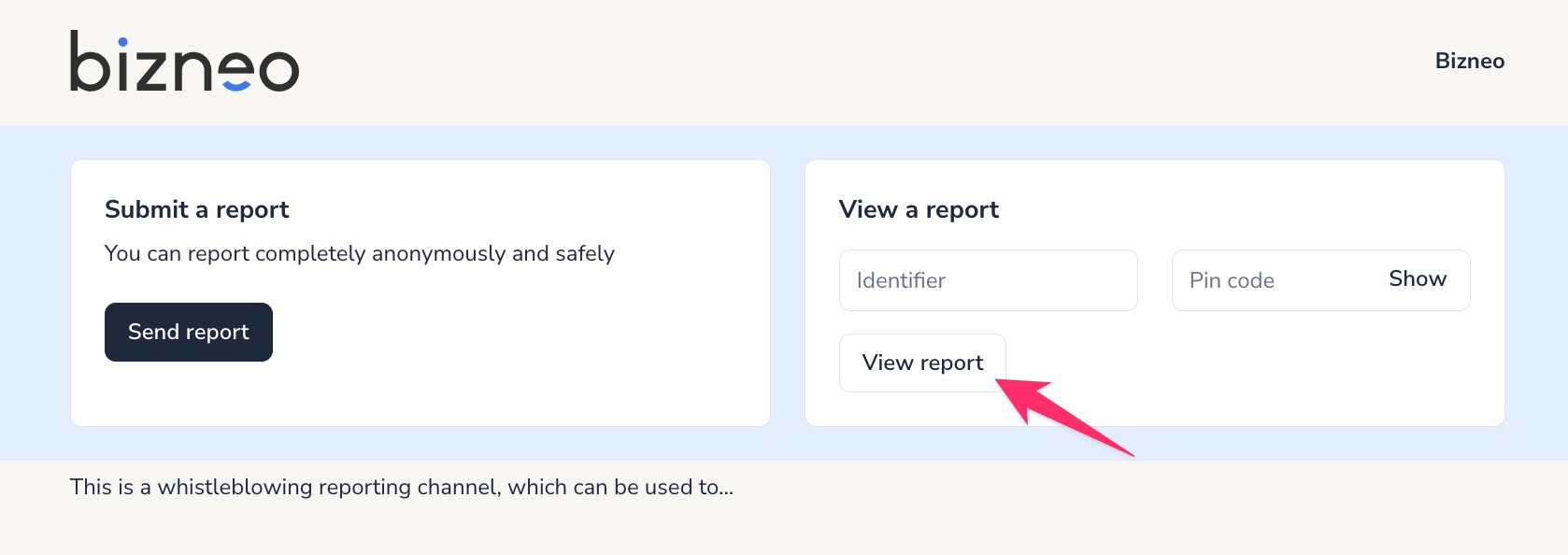 https://NameOfYourBusiness.bizneohr.com/whistleblowing-channel