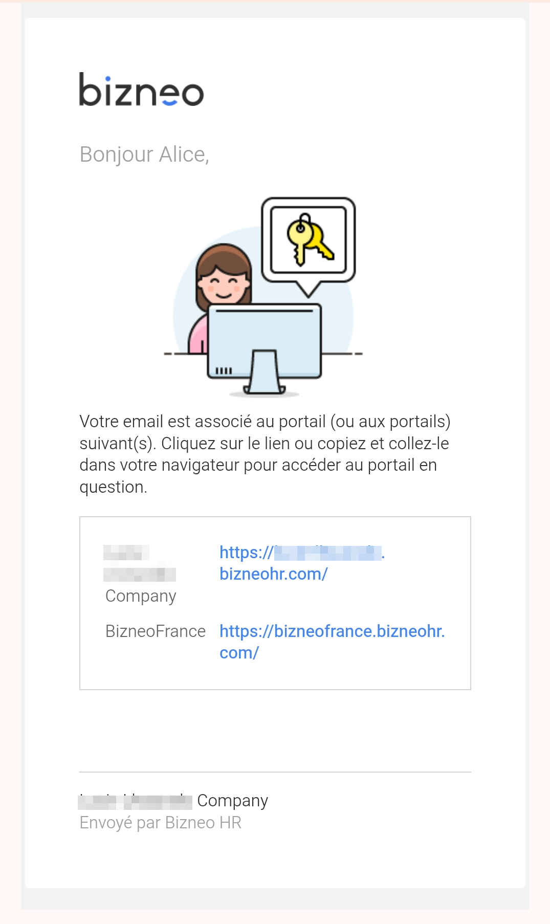 L'url aura pour modèle : monentreprise.bizneohr.com