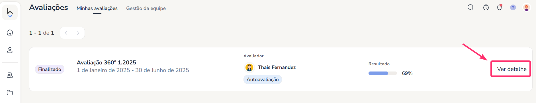 Você poderá ver o detalhe de cada avaliação em Avaliações > Minhas Avaliações