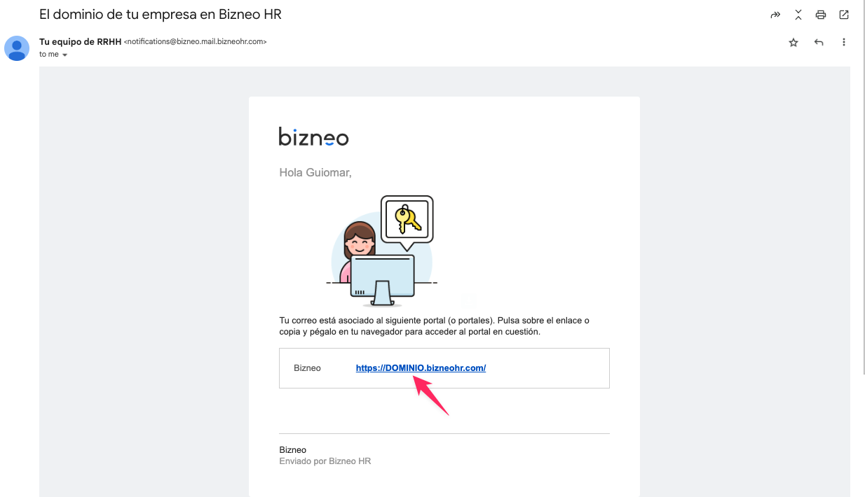 Se você conhece a URL para acessar pela web, é exatamente o que vem antes de .bizneohr.com, ou seja, a URL web será: DOMÍNIO.bizneohr.com