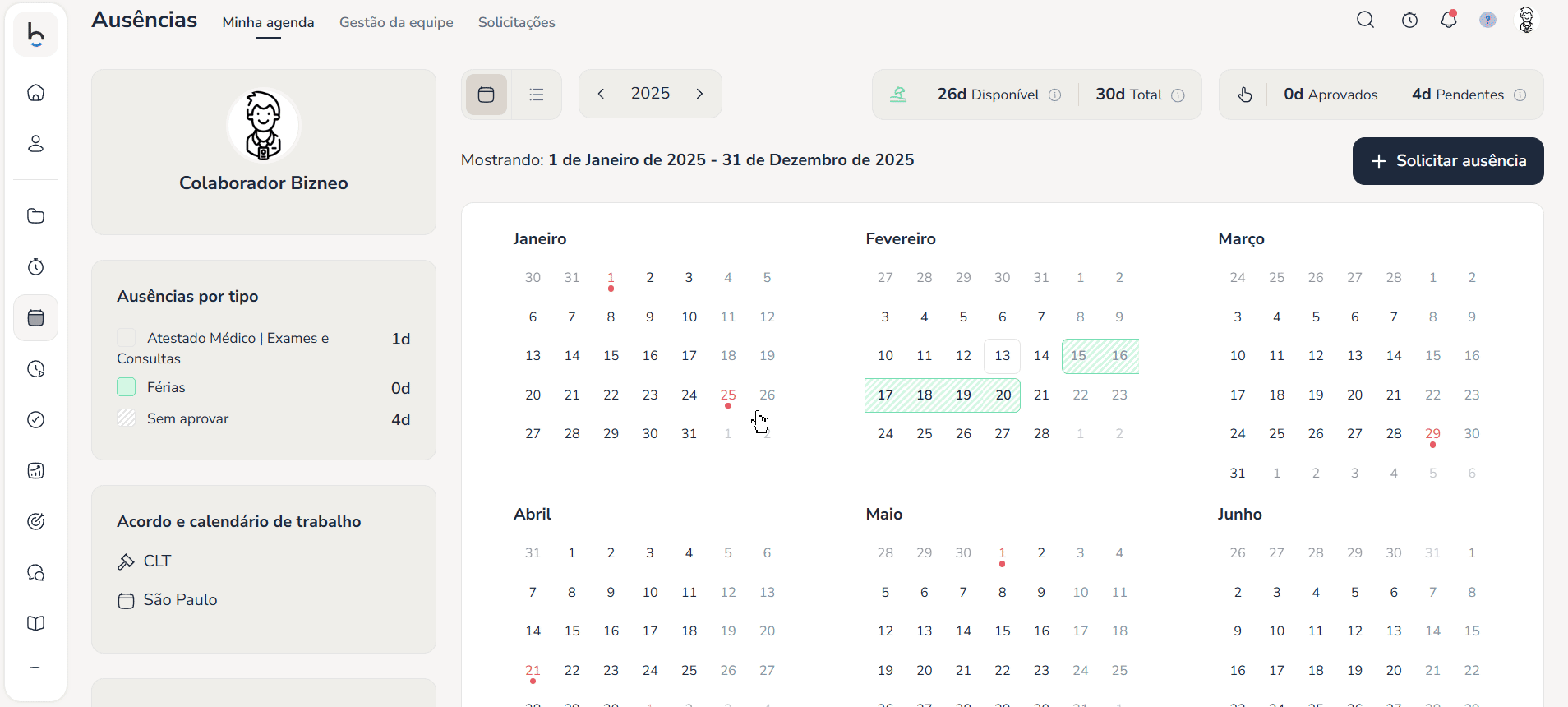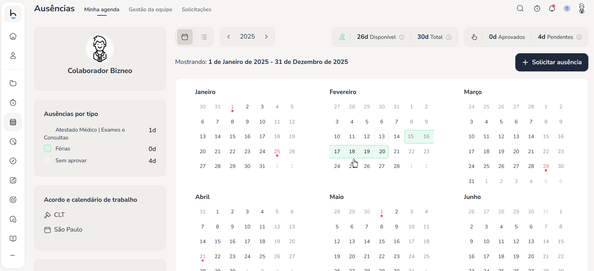 Editar uma ausência ou férias na Bizneo é muito simples. O processo é o mesmo tanto no aplicativo quanto na versão web.